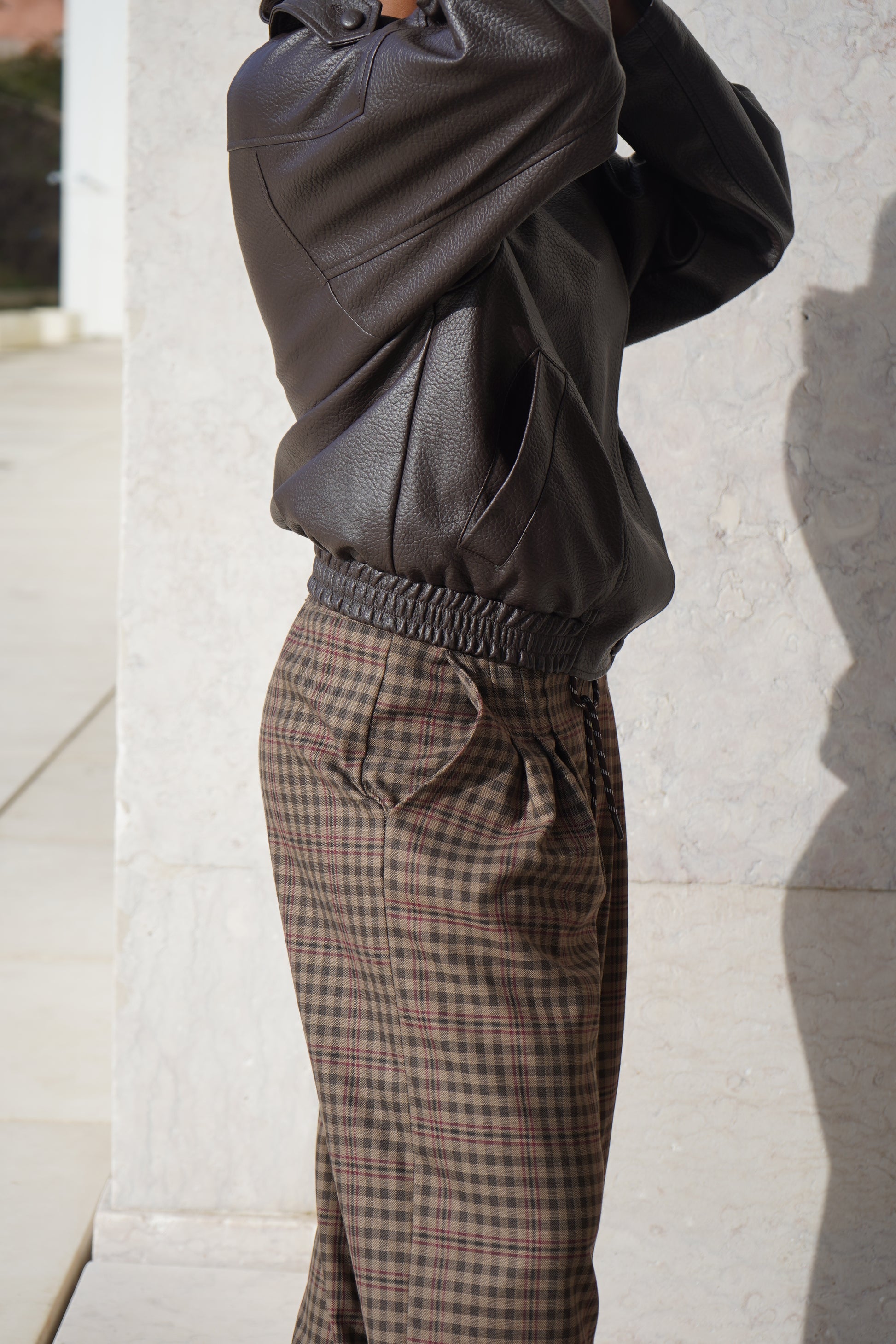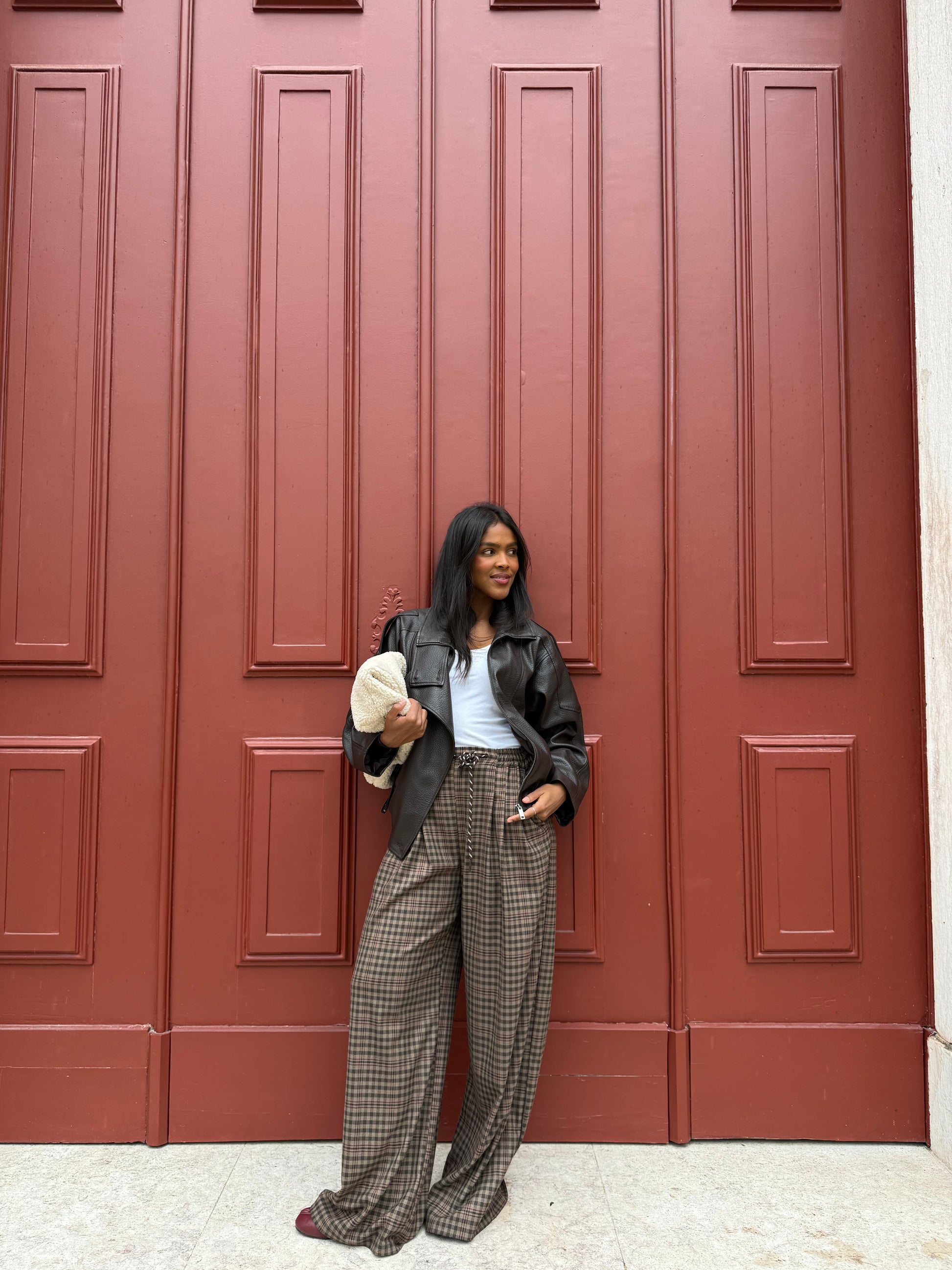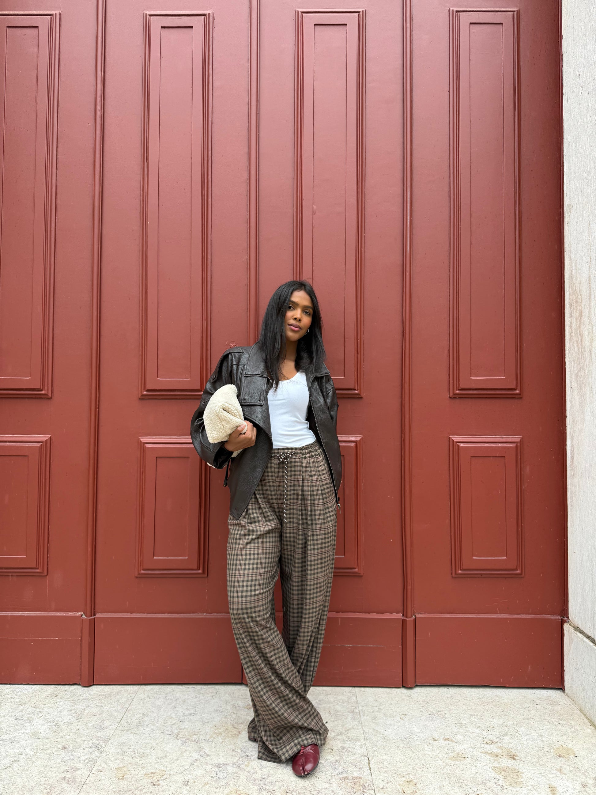 Calças wide leg em padrão xadrez, com cintura subida e cós elástico para máximo conforto. Modelo fluido com cordão ajustável e bolsos laterais.