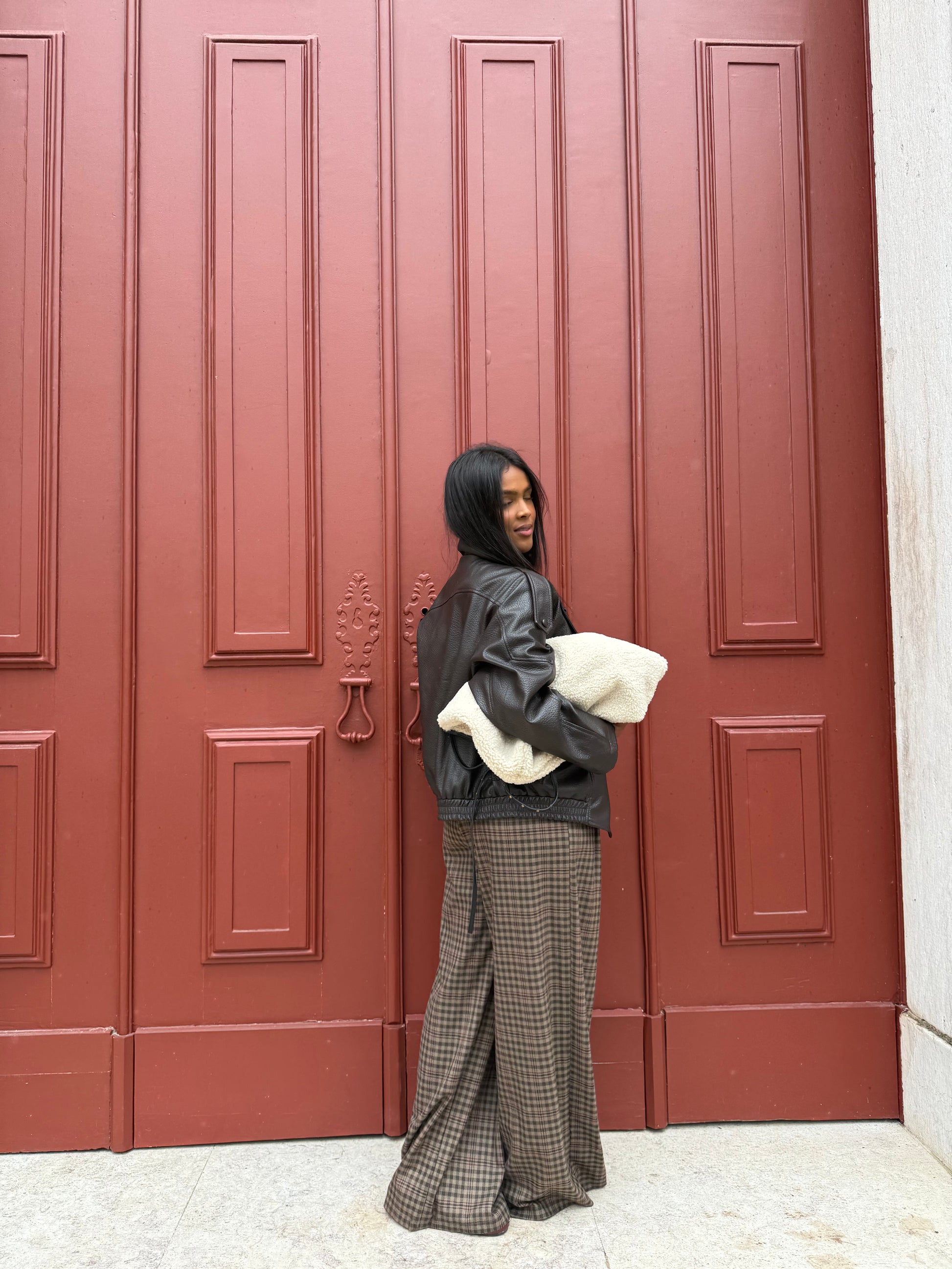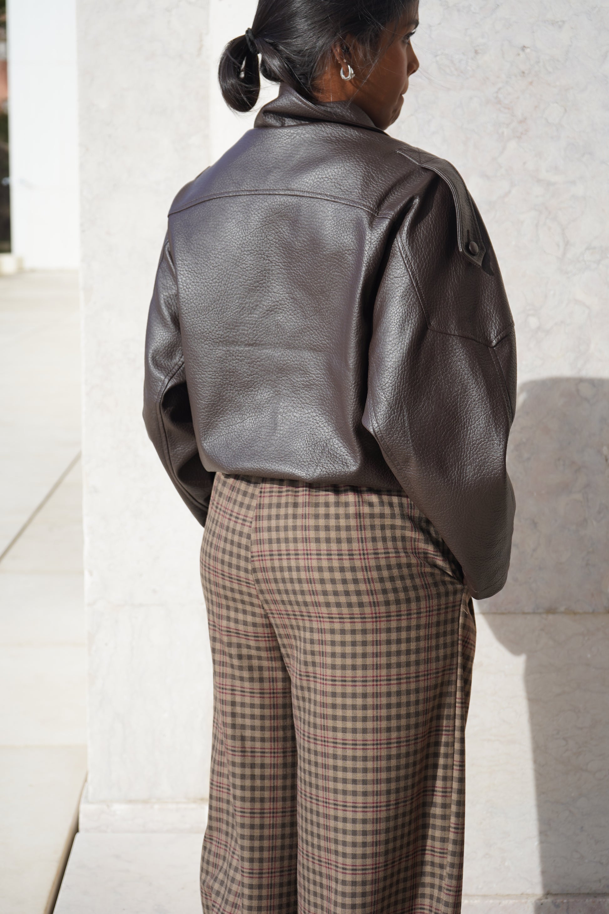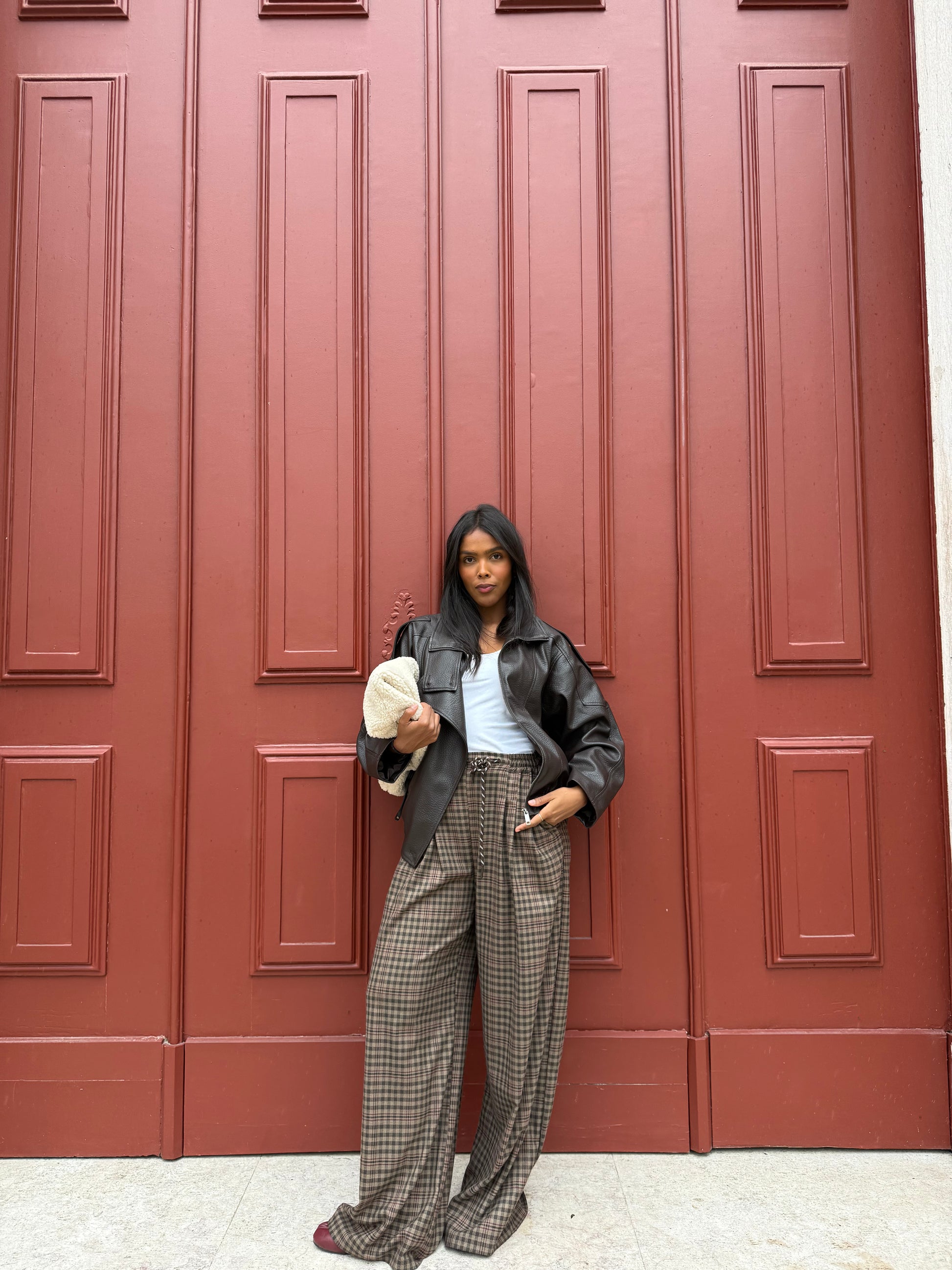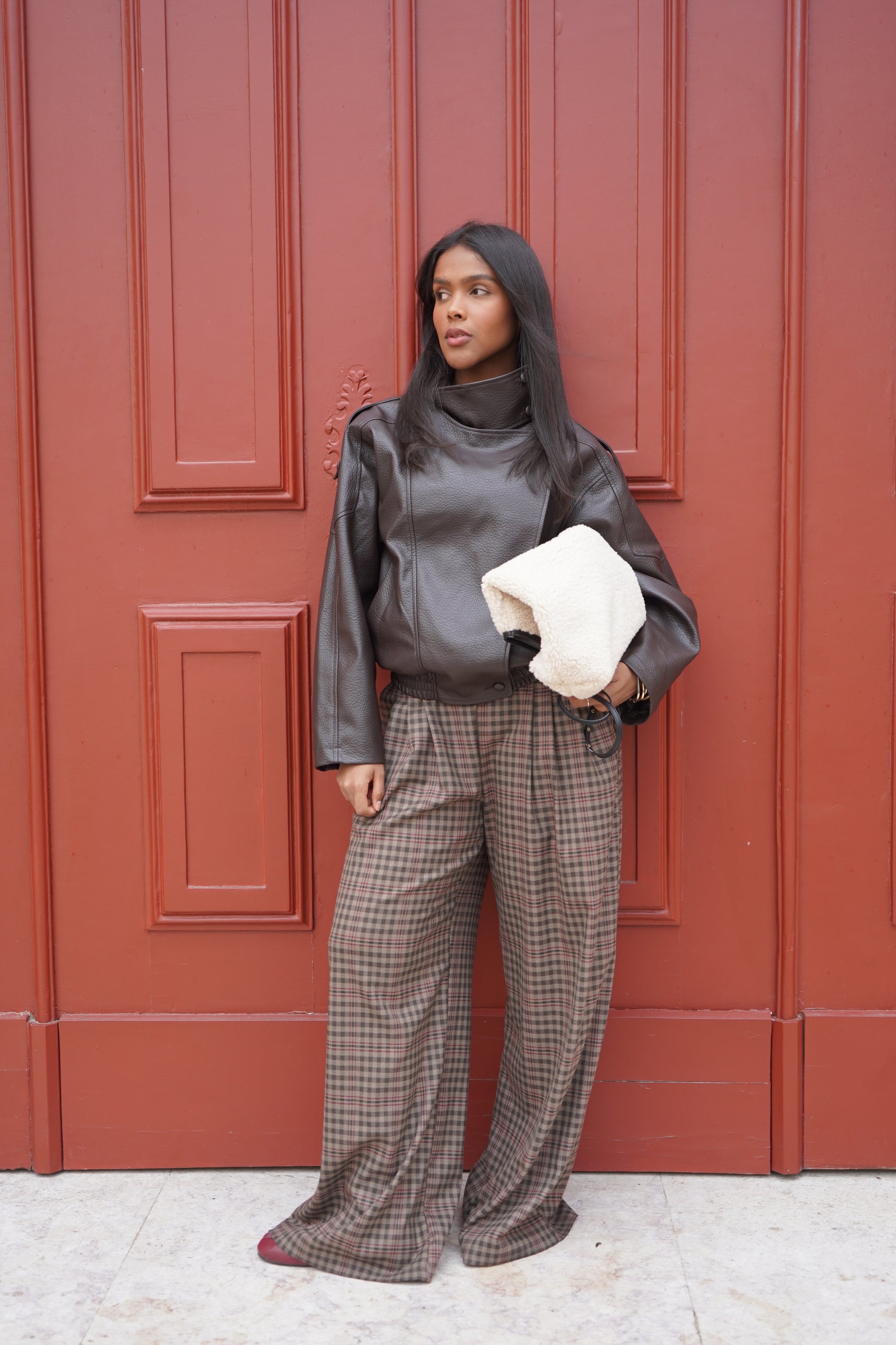 Calças wide leg em padrão xadrez, com cintura subida e cós elástico para máximo conforto. Modelo fluido com cordão ajustável e bolsos laterais.