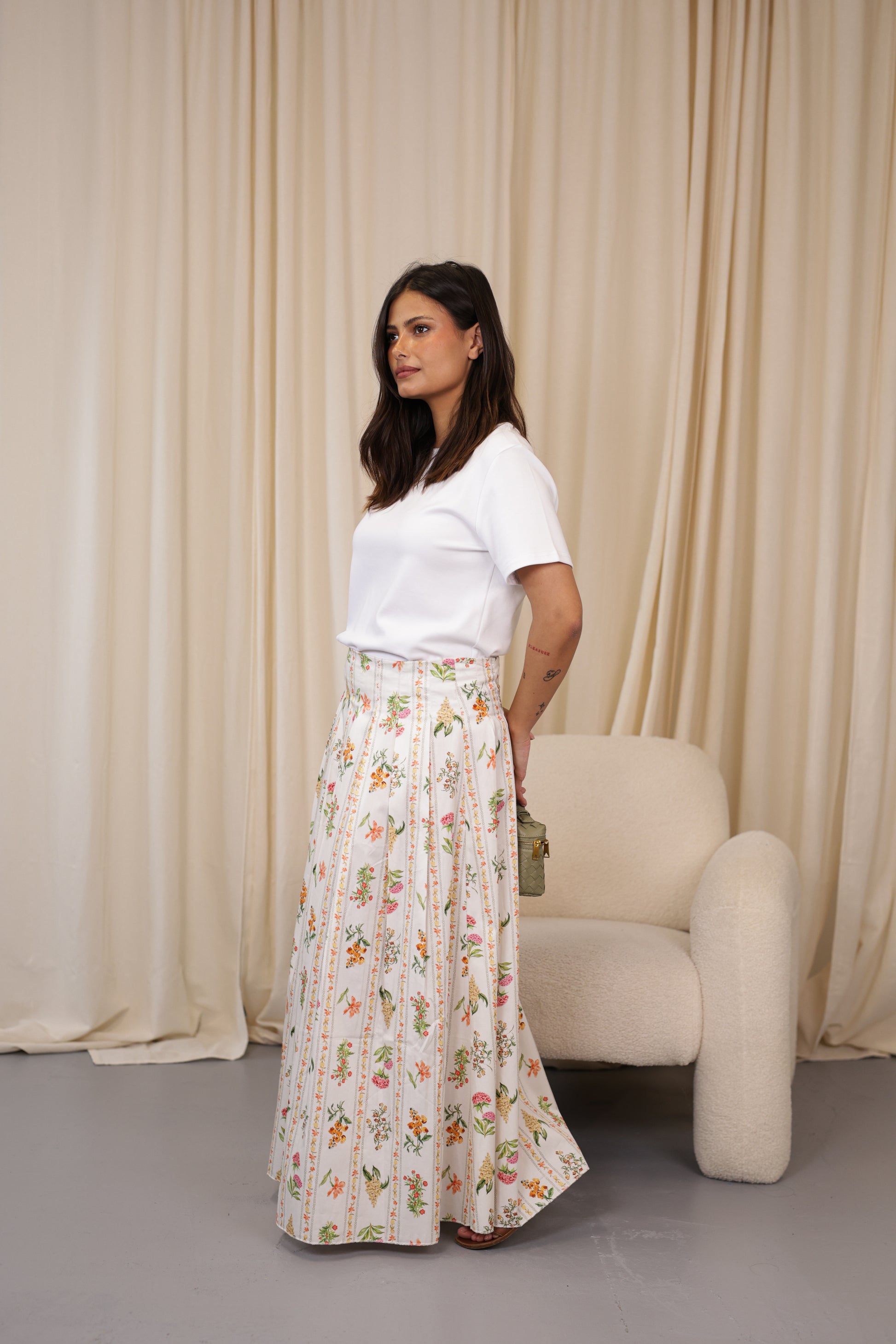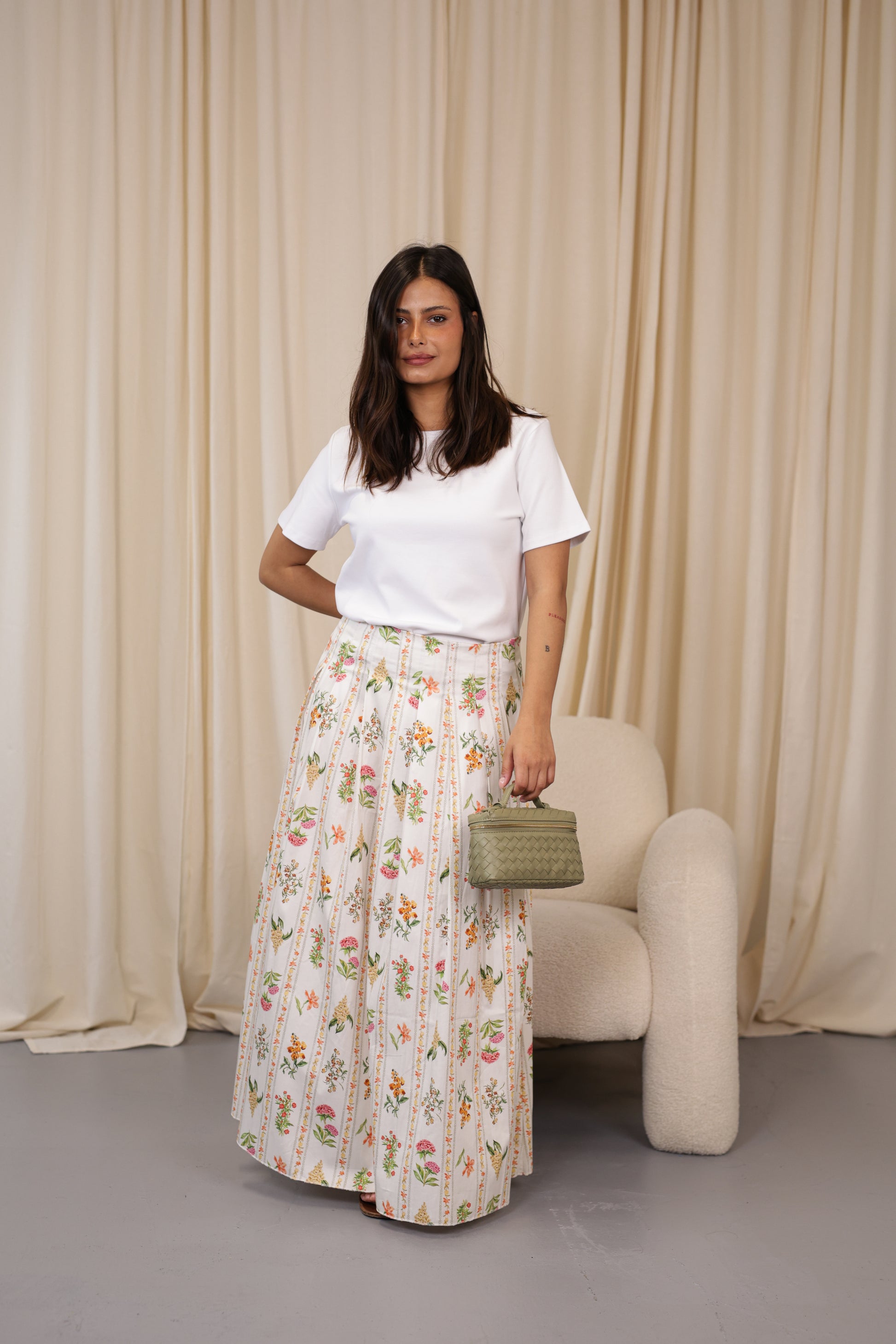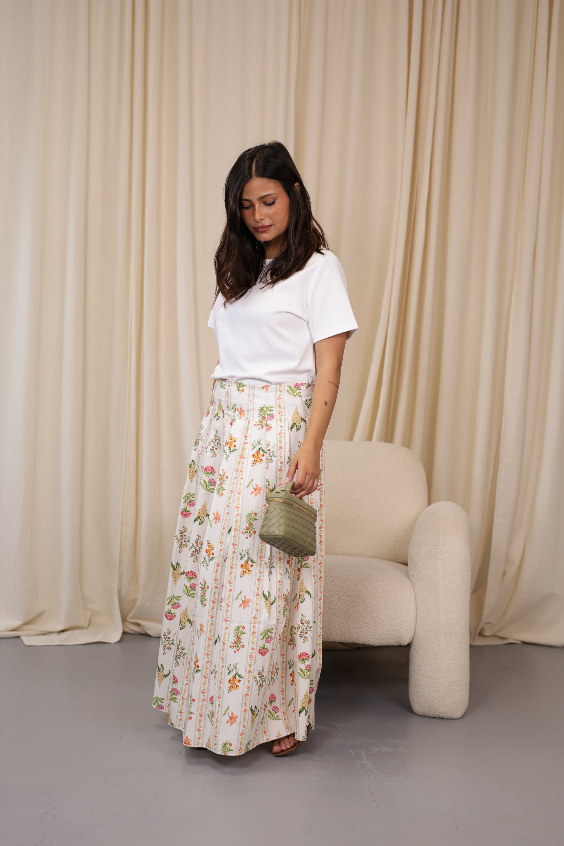 T-shirt com 95% algodão, design clean e atemporal, perfeita para composições versáteis do dia a dia. Possui modelagem reta, levemente solta ao corpo, com mangas curtas e gola redonda clássica, garantindo conforto e praticidade